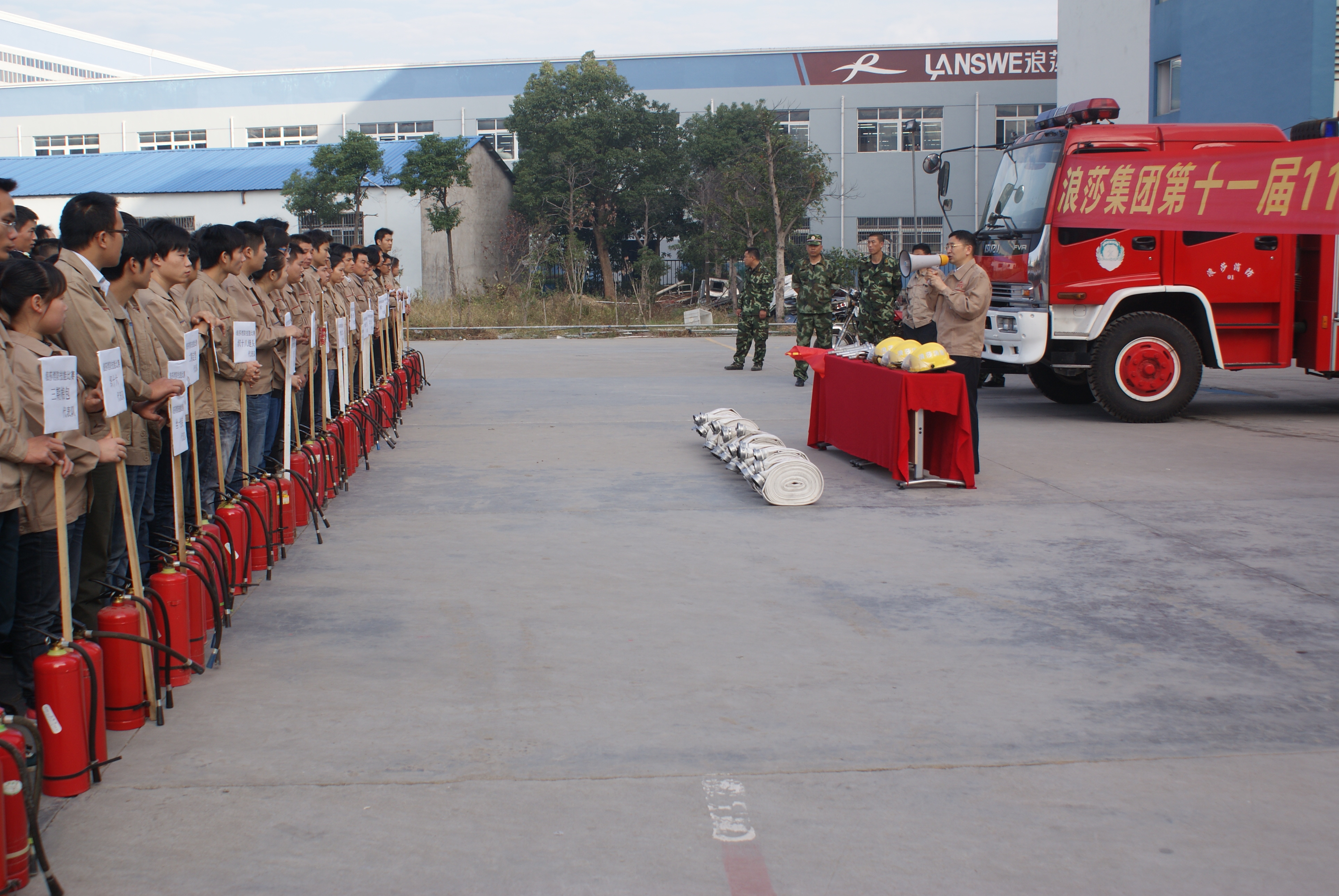 浪莎集團(tuán)第十一屆11.9消防大比武,浪莎集團(tuán)第十一屆11.9消防大比武在浪莎三期工業(yè)園隆重舉辦,公司各部門車間都組成了消防隊參加比武,場面頗為壯觀。在董事長進(jìn)行指示性講話之后,大比武正式開始了。只見參賽選手全副武裝,儼然是專業(yè)的消防隊員,他們在水袋、滅火器使用等環(huán)節(jié)中一一比拼,最終,絲襪定型2車間以綜合成績第一名摘得大比武的冠軍。
