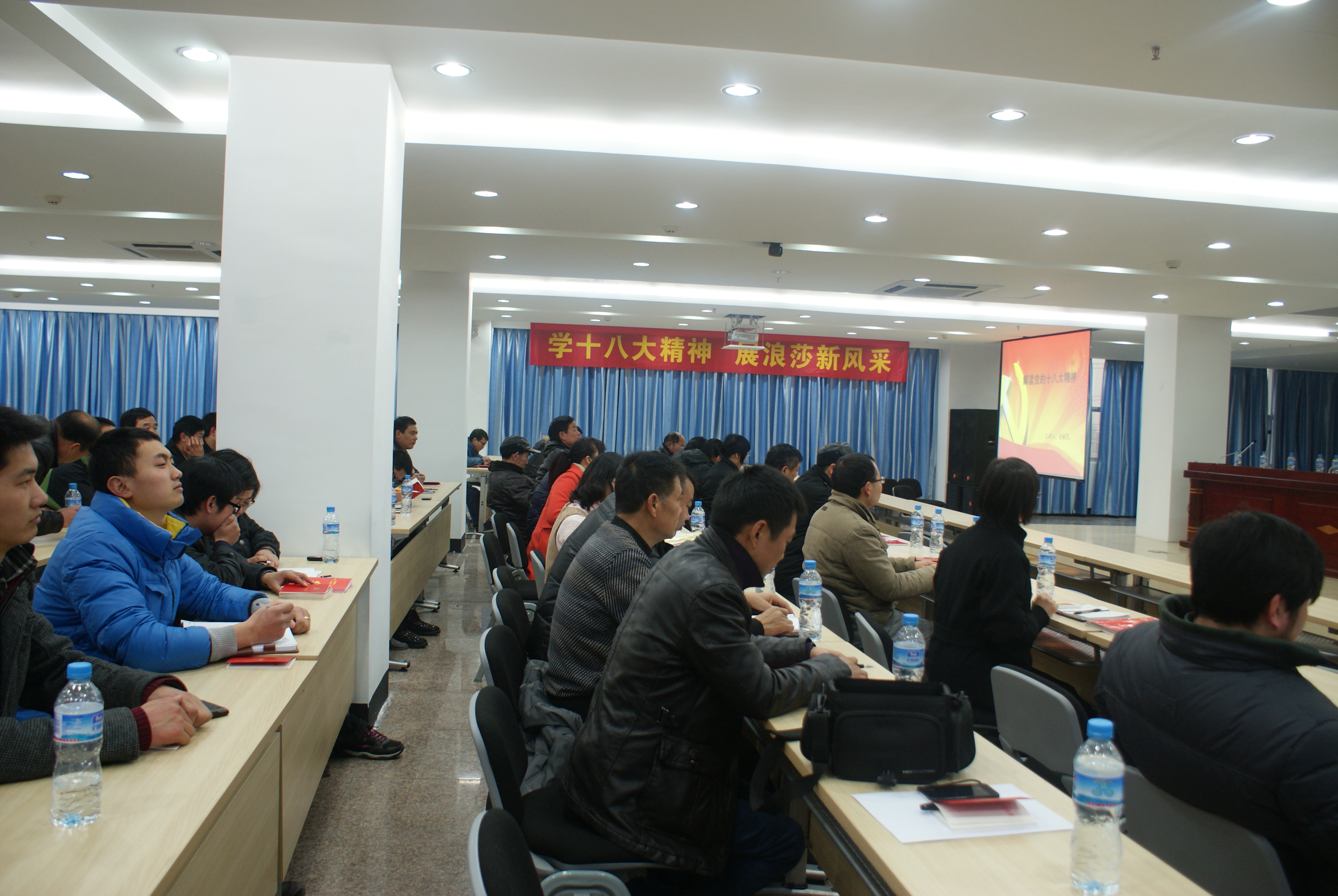 下午16點,浪莎全體黨員、隱性黨員及入黨積極分子和本片區(qū)其他企業(yè)黨員集團就位,認真傾聽培訓老師關于“解讀十八大精神”的講座。講座主要就“中央領導集體順利完成新老交替”、“十八大報告的主要精神”、“義烏如何緊扣黨的十八大精神,抓住國際貿(mào)易綜合改革試點的歷史機遇完成市場轉(zhuǎn)型”等三個方面的內(nèi)容進行解讀。 關于中央領導集體順利完成新老交替,老師強調(diào)新一屆領導班子趨向高學歷、專業(yè)化,體現(xiàn)21世紀信息時代中國政治的與時俱進,并提出與會黨員要加強自身的學習,提高服務崗位、服務人民的水平。
